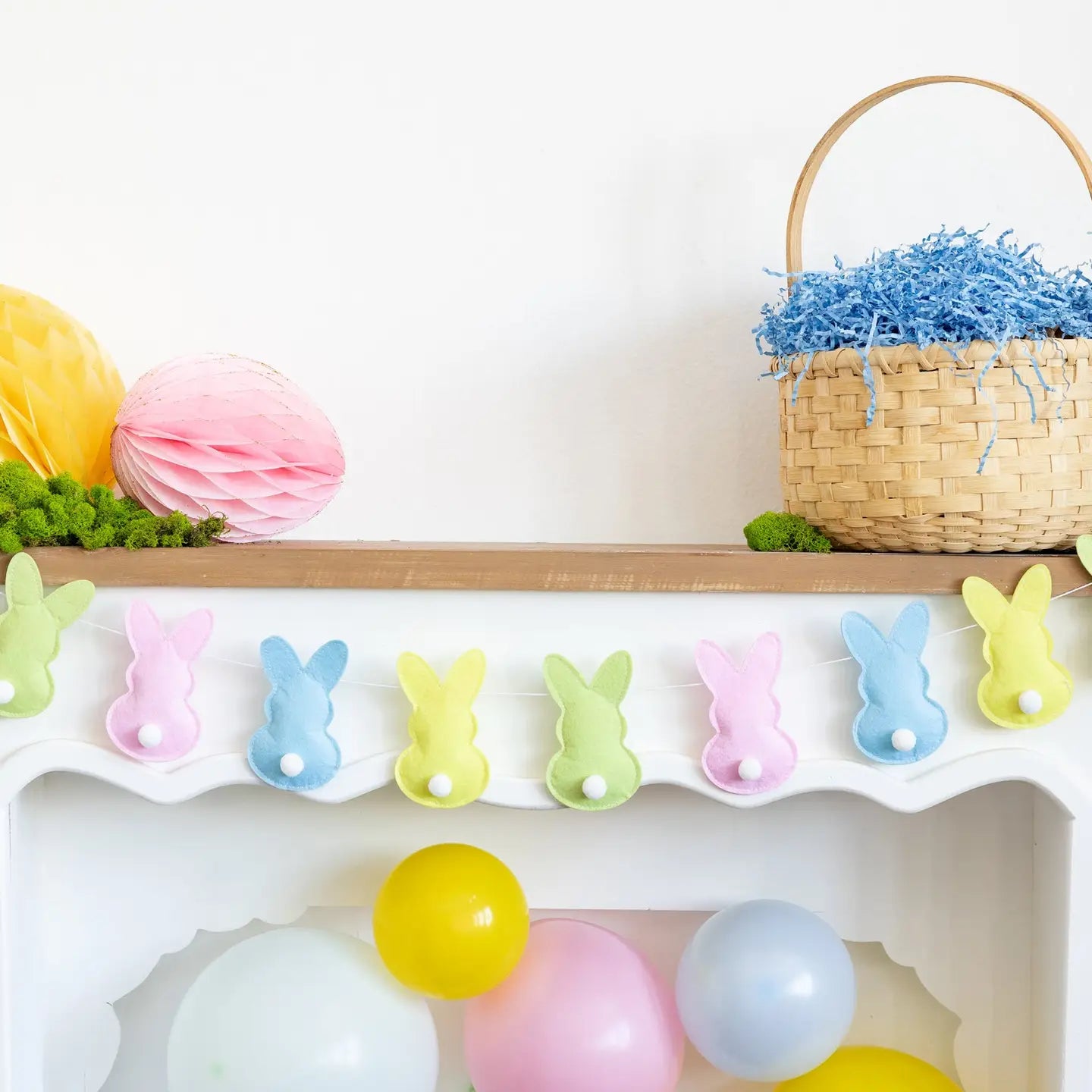 Bring some extra hop to your Easter decorations with our Puffy Felt Pastel Easer Bunny Banner! This adorable banner features puffy felt bunnies in pastel colors, adding a soft and playful touch to your home. Perfect for Easter parties or just adding some whimsy to your space. • includes 12 puffy felt bunnies • banner is 6 feet long • bunnies are 3" x 5"