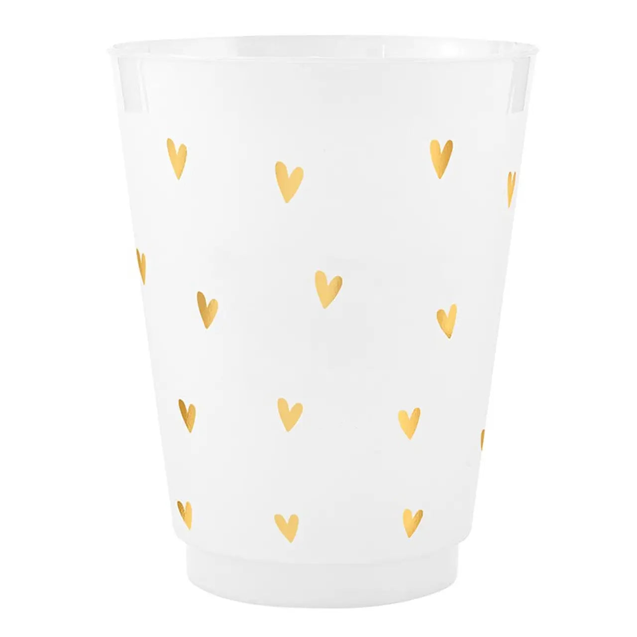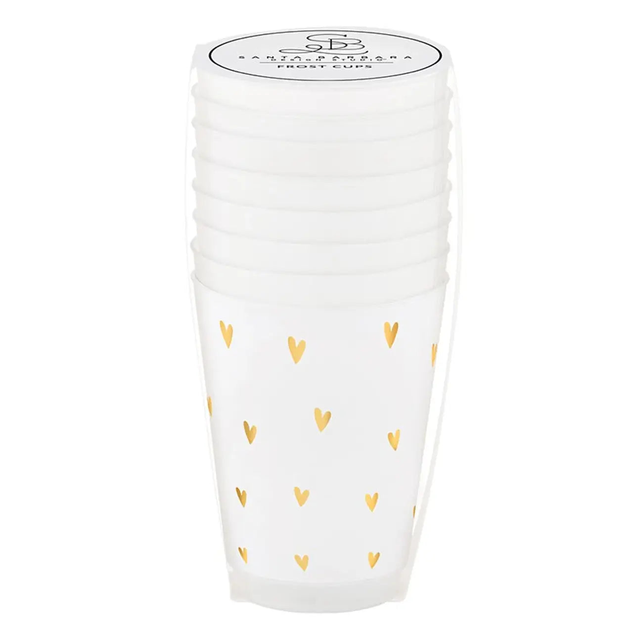 Frost cups are the perfect reusable cup for events, gatherings and everyday use! • Made of frosted plastic with gold foil detailing • Our 16 oz. size is perfect for beer or signature cocktails • The perfect party starter with 8 cups per pack