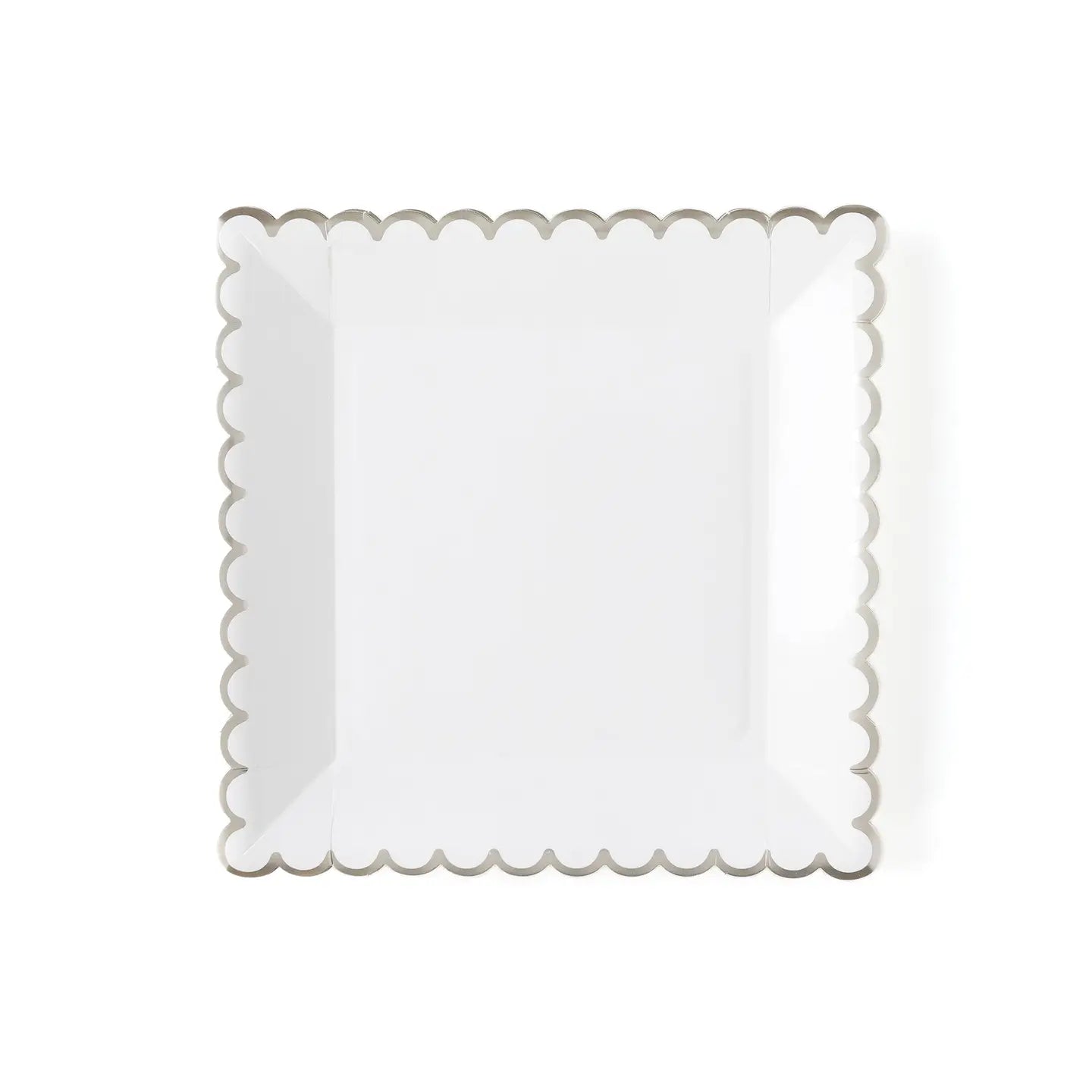 These pretty white paper plates are perfect for elegant party styling and easy clean up. Christmas dinner, Valentines brunch, graduation parties, or baby showers, these scalloped edge plates will simplify setting the table for your event and tie it all together. • 9" Square Paper Plates • 8 Plates per Package